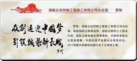在多年的努力下,在罗刚精益求精理念的带领下,众创公司先后荣获“2015年度行业技术创新奖”“全国质量、服务、信誉AAA级示范企业”“中国土木工程服务最具公信力领军企业”“最具影响力民营企业”以及“2018中国长城民族品牌”等荣誉称号。罗刚本人亦获得了“2017创新中国建筑加固行业十大榜样人物”的殊荣。