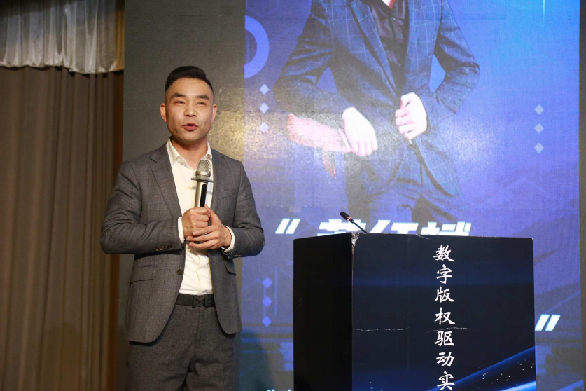 海南众旅实业有限公司总裁唐海丽女士率先致辞,强调了数字版权在实体经济转型升级中的重要作用。