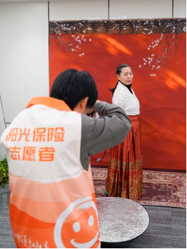 活动现场氛围热烈又温馨。摄影师志愿者们早早到岗,提前布置好拍摄背景。面对每一位来参与的老人,志愿者们都格外有耐心。为了让老人拍摄时呈现最好的状态,他们会先和老人聊几句,了解老人的喜好和气质,再据此帮忙设计合适的造型,贴心地整理服饰细节。让老人们以最佳的精神状态面对镜头,留下满意的照片。